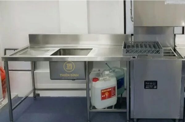 Hình ảnh thực tế của bàn bát bẩn inox có lỗ xả rác (Dùng kèm theo máy rửa bát)