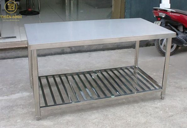Đặc điểm nổi bật của bàn chặt inox lót gỗ có giá nan bên dưới