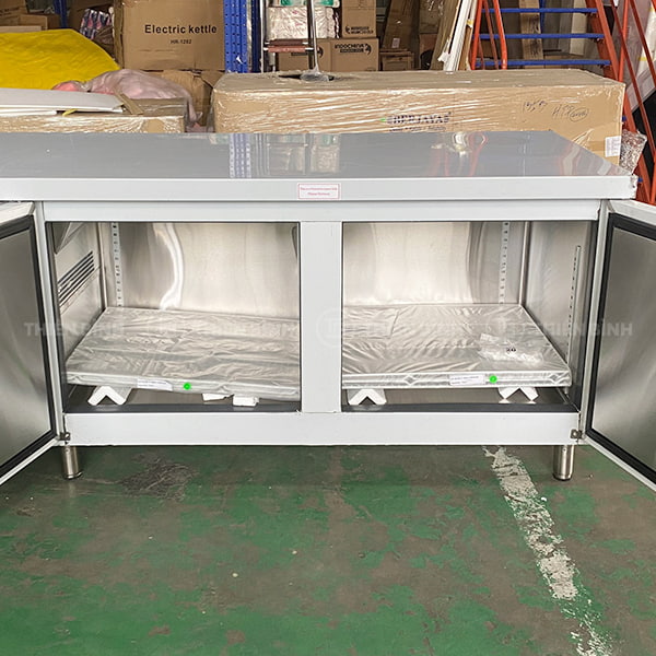 - Lớp cách nhiệt mật độ cao được bơm kín trong thành bàn giúp bảo ôn hiệu quả, giữ nhiệt ổn định bên trong để thực phẩm được bảo quản lâu dài mà không lo thất thoát hơi lạnh, đồng thời tiết kiệm điện năng đáng kể cho người dùng.