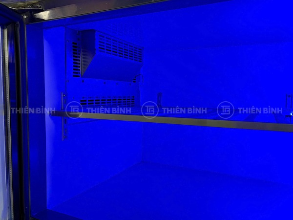- Phần thân tủ được gia công từ inox 201 bền chắc, phủ lớp bảo vệ trắng kết hợp hai cánh kính hiện đại, vừa tăng tính thẩm mỹ vừa cho phép kiểm tra thực phẩm bên trong mà không cần mở cửa, giúp hạn chế thất thoát hơi lạnh và tiết kiệm điện năng.