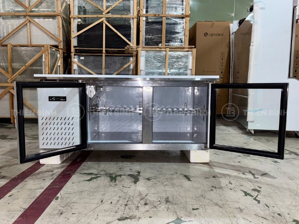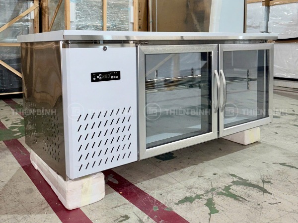 - Bàn đông sử dụng máy nén Cubigel kết hợp hệ thống làm lạnh đối lưu bằng quạt gió và môi chất lạnh R-290a, giúp duy trì nhiệt độ ổn định trong khoảng -20°C đến 10°C. Nhờ luồng khí lạnh phân bố đều, thực phẩm được bảo quản trong điều kiện tối ưu, hạn chế đóng đá và giữ nguyên chất lượng.