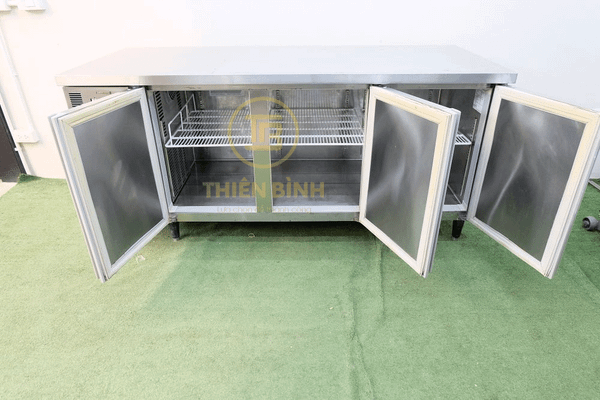 - Lớp cách nhiệt dày cùng gioăng cao su viền cửa giữ hơi lạnh hiệu quả, hạn chế đọng sương và giúp bàn vận hành ổn định trong môi trường bếp ẩm nóng.
