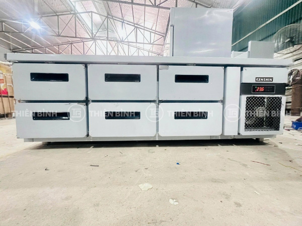 Bàn mát 6 ngăn kéo quạt gió Kenshin KS-1875C/6N sở hữu 6 hộc kéo độc lập, làm lạnh quạt gió đều khoang, inox sáng dễ vệ sinh, giữ nhiệt ổn định.