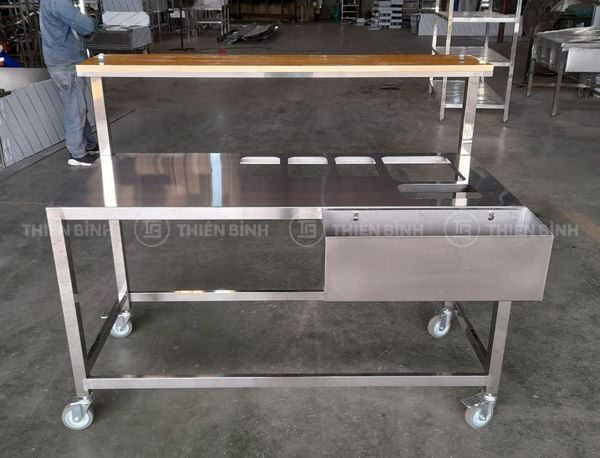 - Bàn được thiết kế nhỏ gọn giúp tối ưu không gian và dễ dàng sử dụng trong lớp học pha chế, quầy phục vụ, khu thực hành tại trường học.
