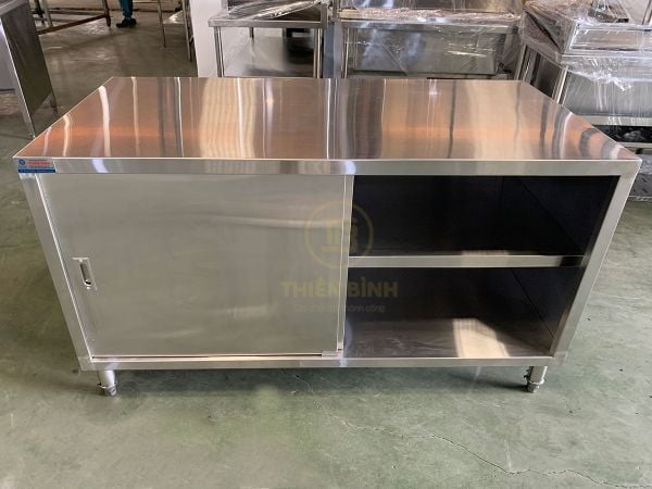 - Bàn tủ sơ chế cửa lùa có kiểu dáng công nghiệp linh hoạt, kích thước vừa phải, dễ ghép nối với các thiết bị khác trong bếp.