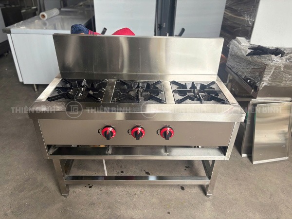 - Bếp được trang bị 3 họng đốt riêng biệt, hoạt động độc lập, cho phép chế biến đồng thời nhiều món ăn và dễ dàng điều chỉnh mức lửa phù hợp cho từng nồi chảo mà không gây ảnh hưởng lẫn nhau.