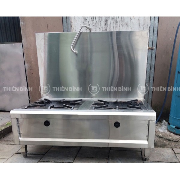 Bếp hầm đôi có vòi nước thiết kế chắc chắn, chất liệu inox 304, kiềng gang đúc 5A1, có vòi cấp nước trực tiếp, chân bếp có giằng gia cố chắc chắn, chịu được khối lượng lớn