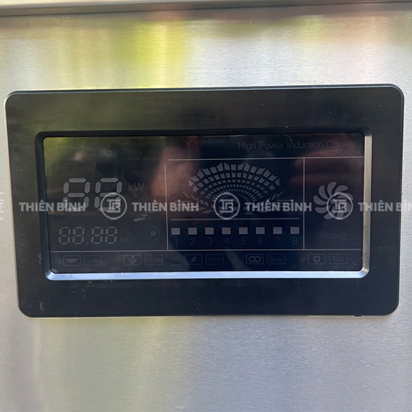 - Phần thân bếp tích hợp bảng điều khiển cảm ứng thông minh với màn hình LED hiển thị rõ ràng, cho phép người dùng theo dõi nhiệt độ, thời gian và mức tiêu thụ điện năng một cách chính xác. Thanh gạt từ điều khiển 8 mức nhiệt được bố trí ngay trên thân bếp, thao tác linh hoạt, dễ điều chỉnh theo từng món ăn, kết hợp chế độ OFF an toàn khi không sử dụng.