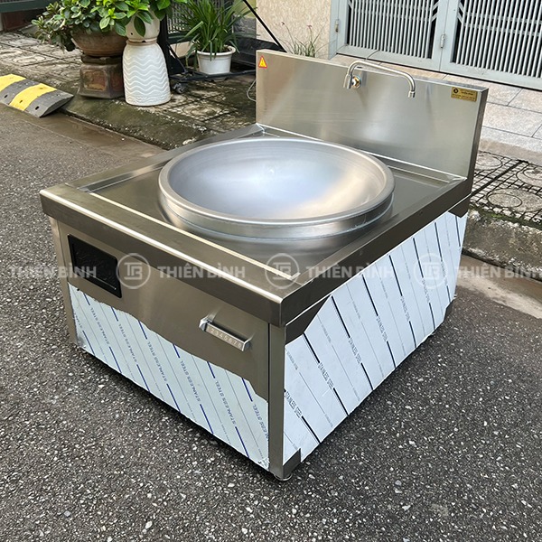 Bếp từ công nghiệp đơn chảo liền 20kW thiết kế chắc chắn, có vòi cấp nước trực tiếp tiện lợi, đường kính chảo rộng 800mm, xào trực tiếp trong lòng bếp