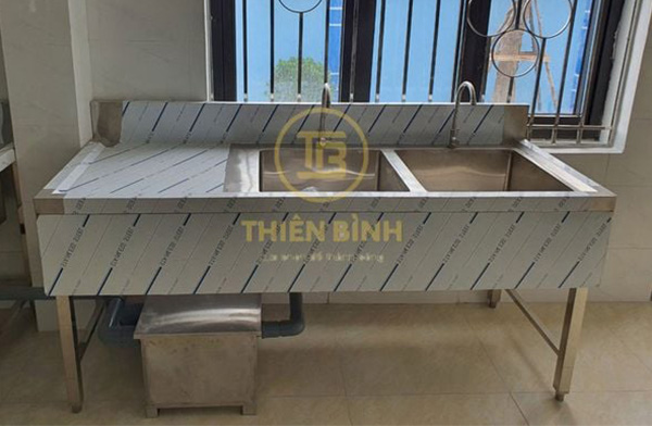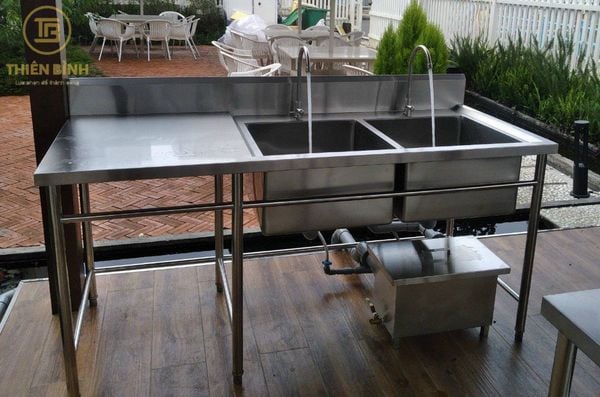 Chậu rửa công nghiệp đôi cánh trái hỗ trợ người dùng đặt thực phẩm hay chén đĩa sau khi rửa, giảm thao tác di chuyển, tiết kiệm thời gian trong quá trình sử dụng.