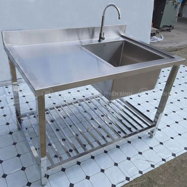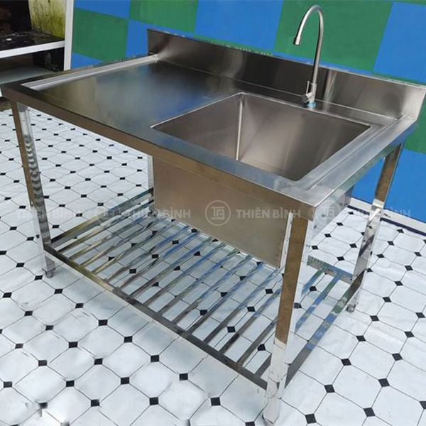 Bếp Thiên Bình bán chậu rửa inox đơn có bàn lệch trái và giá nan dưới giá tốt