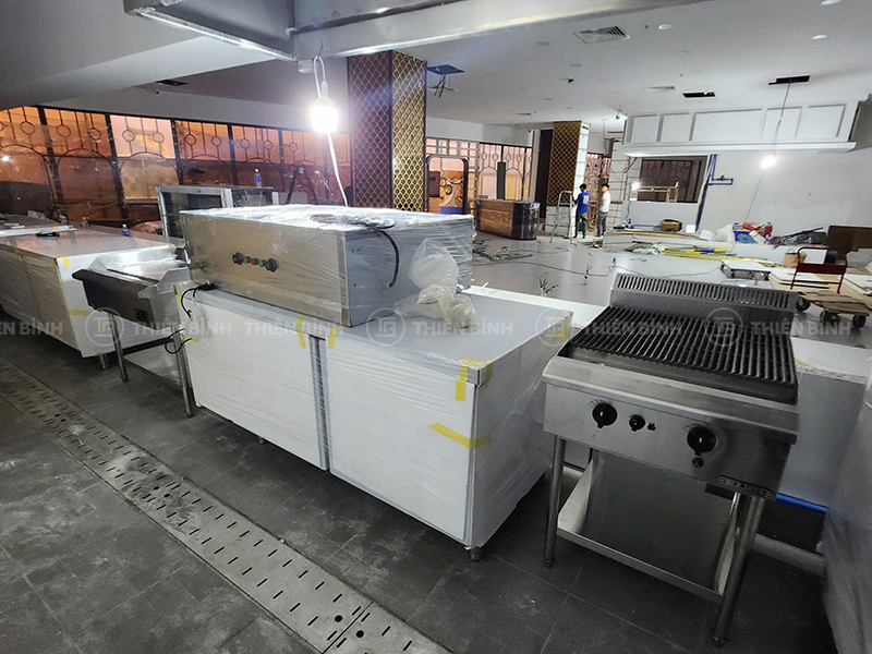 Để phục vụ được lượng lớn các món ăn, nhà hàng đã được trang bị đa dạng các thiết bị bếp công suất lớn từ bếp ábếp âubếp chiên phẳngbếp nướng than đá… Đồng thời, để tối ưu không gian khu bếp, bên cạnh các tủ lạnh bảo quản đứng, hệ thống bàn lạnh đã được ưu tiên sử dụng để tận dụng được mặt bàn làm bàn thao tác.