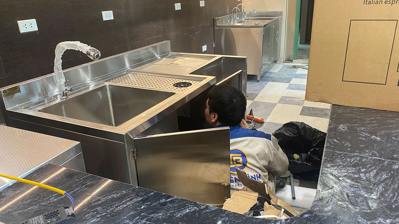 Lắp đặt quầy pha chế inox cho quán cà phê Trúc Lâm