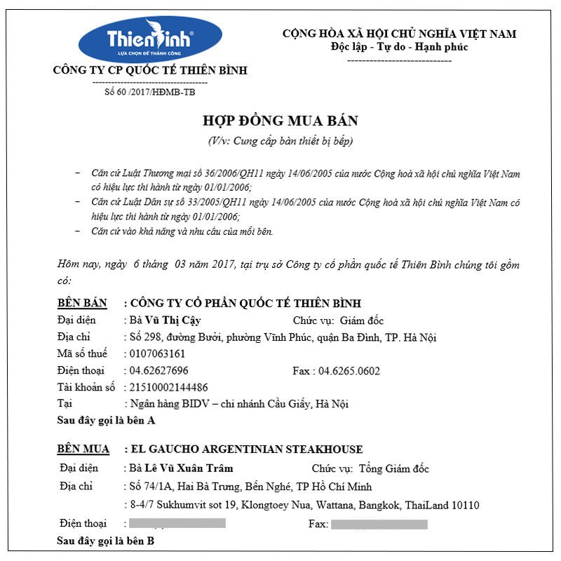 Hợp đồng dự án thiết kế và cung cấp thiết bị bếp nhà hàng El Gaucho