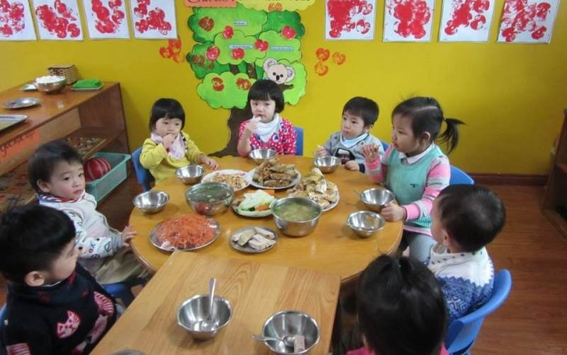 Trường mầm non Hoa Hồng luôn chú trọng bữa ăn dinh dưỡng cho trẻ