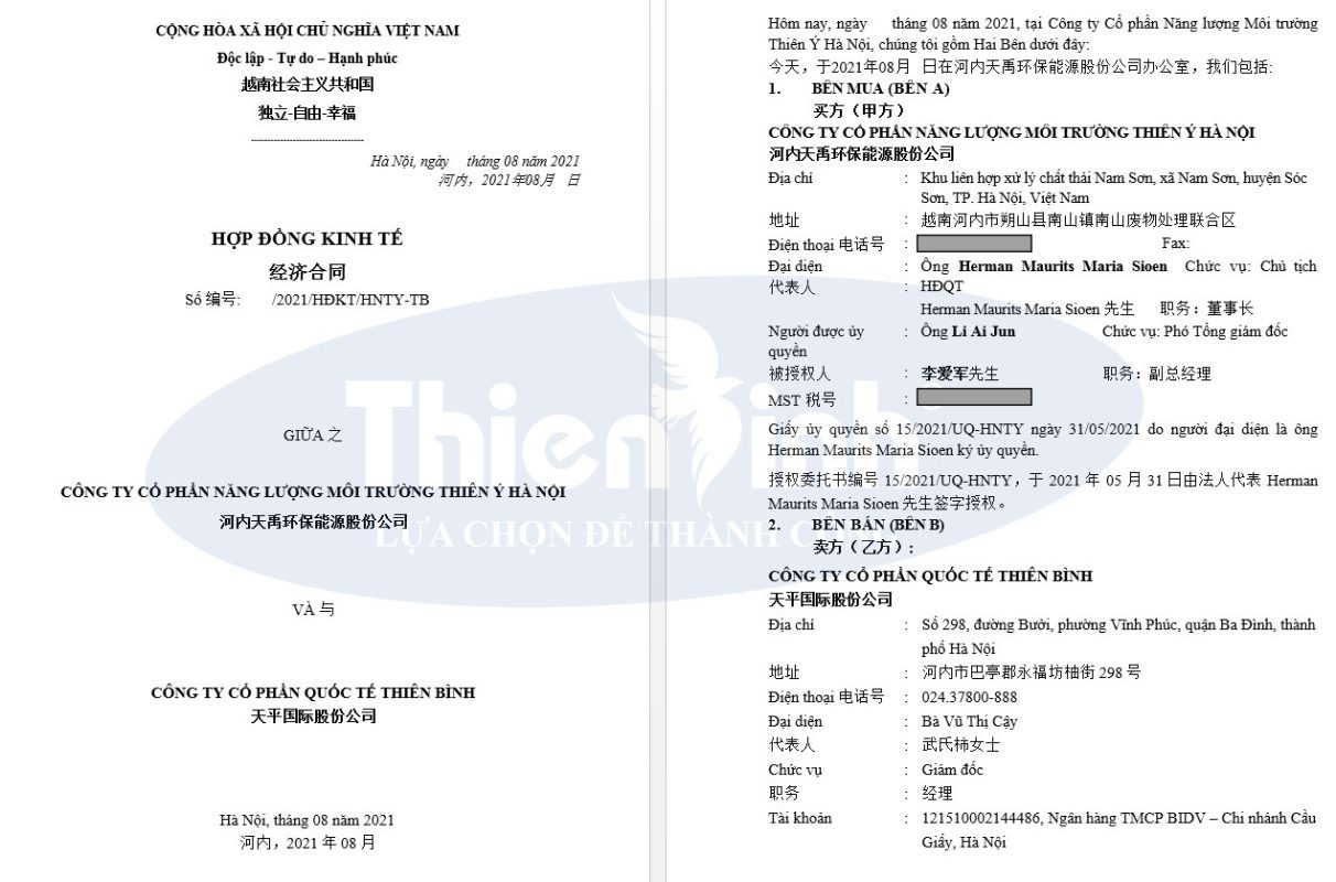 Thiên Bình Group xin gửi lời cảm ơn chân thành và sâu sắc nhất tới ông Herman Maurits Maria Sioen chủ tịch HĐQT và Ông Li Ai Jun phó giám đốc của Tập đoàn Thiên Ý trong dự án thiết kế hệ thống bếp ăn công nghiệp cho nhà máy xử lý rác thải Sóc Sơn.