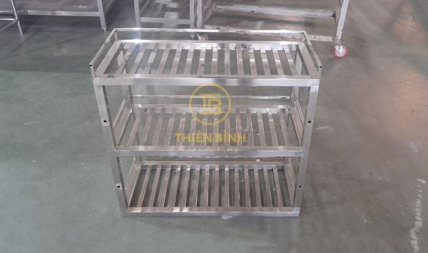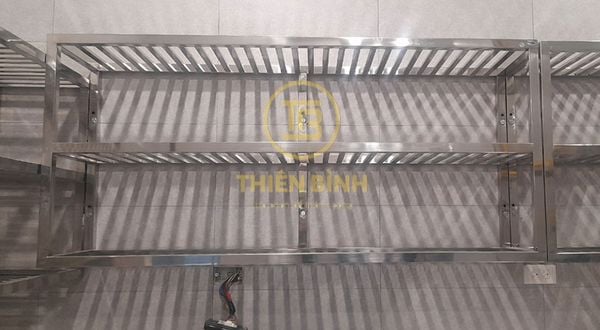 Kệ inox 3 tầng giá nan treo tường nổi bật với 3 tầng nan thoáng, treo cao tiết kiệm diện tích, inox sáng bền dễ vệ sinh, phù hợp lưu trữ bát đĩa và dụng cụ bếp.