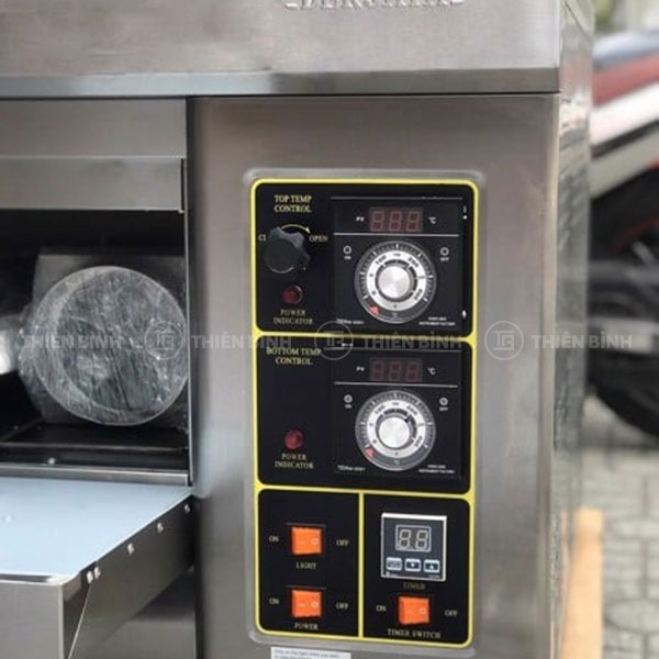 - Bảng điều khiển được bố trí trực quan với các núm vặn điều chỉnh nhiệt độ, thời gian cùng công tắc nguồn và công tắc đèn, hỗ trợ người dùng thao tác dễ dàng ngay cả với người mới sử dụng.
