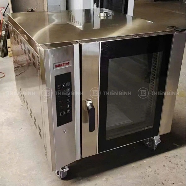 - Thiết bị được thiết kế với 5 khay nướng kèm theo phụ kiện đầy đủ, cho phép nướng nhiều mẻ bánh cùng lúc, phù hợp với nhu cầu sản xuất liên tục tại các tiệm bánh hoặc bếp bánh chuyên nghiệp.