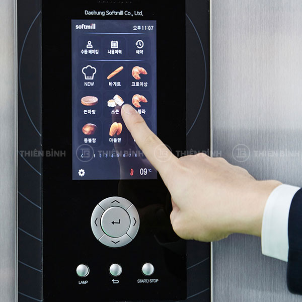 - Màn hình LCD cảm ứng hiển thị đầy đủ các thông số cài đặt, cho phép người dùng kiểm soát thời gian, nhiệt độ và chu trình nướng một cách trực quan, nhờ đó giảm thiểu sai số trong quá trình vận hành, nhất là khi có nhiều nhân sự thay phiên sử dụng thiết bị.