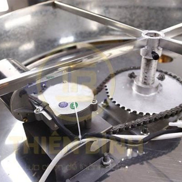 - Trục xoay điện hoạt động bằng môtơ 24V cho chuyển động ổn định giúp nhiệt lan tỏa đều quanh từng con vịt và giữ hương vị thơm ngon sau khi hoàn thiện.