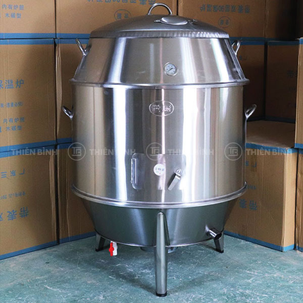 Lò quay vịt inox 100 có cấu tạo 2 lớp inox cùng lõi bông cách nhiệt, vận hành bằng than hoặc gas, giữ nhiệt hiệu quả, thực phẩm chín đều từ trong ra ngoài.