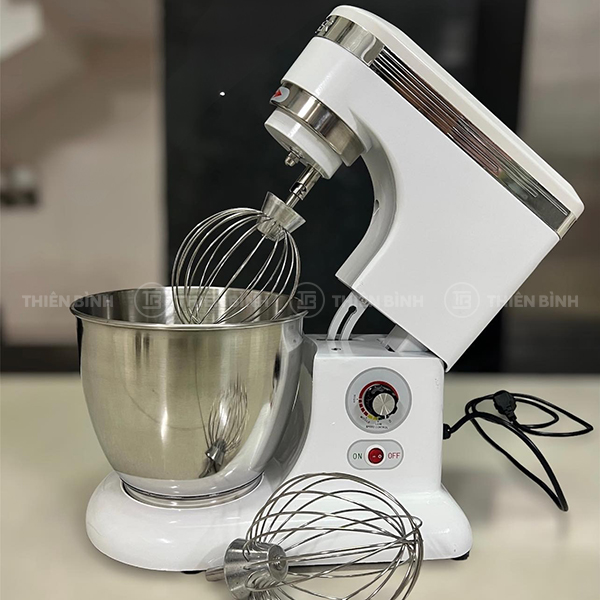 Máy đánh kem 7L Soven SS-M7A nhỏ gọn, công suất 250W, trang bị 2 lồng đánh, có núm điều khiển tốc độ tùy chỉnh đáp ứng nhu cầu đánh trộn khác nhau