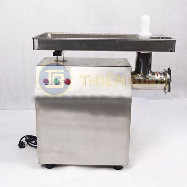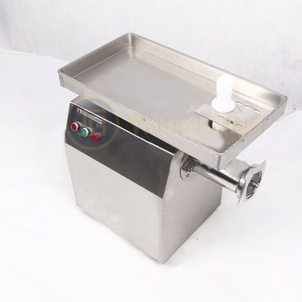 - Máy có trọng lượng khoảng 65kg, sử dụng động cơ công suất 1500W, mang lại năng suất xay đùn lên đến 240kg thịt mỗi giờ.