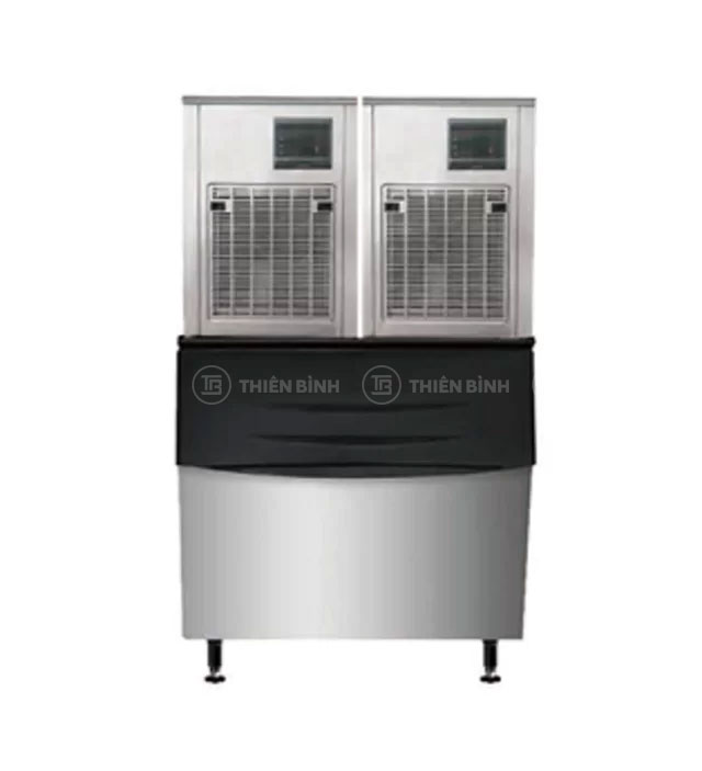 - Thùng chứa đá dung tích 350kg lưu trữ đá thành phẩm hiệu quả, máy tự động ngừng khi thùng đầy và tiếp tục sản xuất khi đá giảm, đảm bảo năng suất liên tục và ổn định trong ngày.