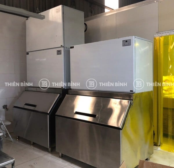 - Khoang chứa đá được tích hợp sẵn trong thân máy với sức chứa lớn từ 700 đến 800kg. Thùng bảo quản được làm từ inox có khả năng cách nhiệt tốt, giúp giảm thất thoát hơi lạnh ra môi trường bên ngoài, hạn chế tình trạng tan chảy và hao hụt đá thành phẩm.