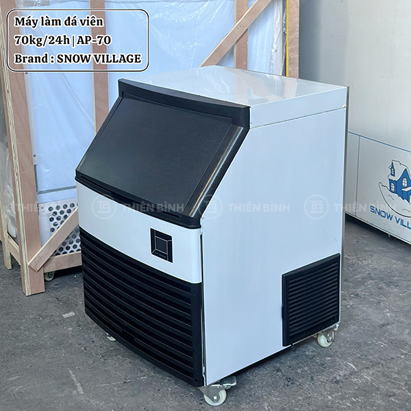- Máy làm đá viên 70kg/24h Snow Village AP-70 được ứng dụng công nghệ làm lạnh tiên tiến kết hợp hệ thống làm đá bằng quạt gió, mang lại năng suất tối đa lên đến 70 kg/ngày.