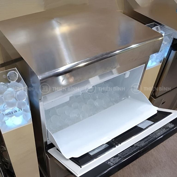 - Đá thành phẩm là dạng viên cầu đường kính 45mm, đẹp mắt, trong suốt và tan chậm, giúp tăng tính thẩm mỹ cho đồ uống.