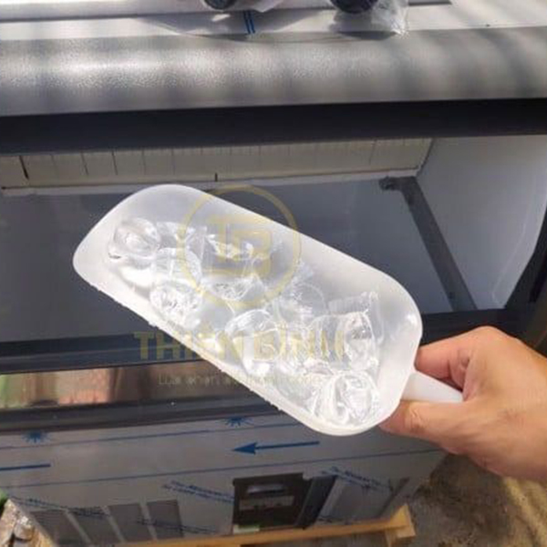 - Thùng chứa đá bên trong máy có sức chứa khoảng 48 kg, và máy được trang bị cảm biến để tự ngưng sản xuất khi thùng đầy, sau đó tiếp tục làm đá khi lượng đá giảm, giúp duy trì nguồn đá ổn định mà không gây tràn.