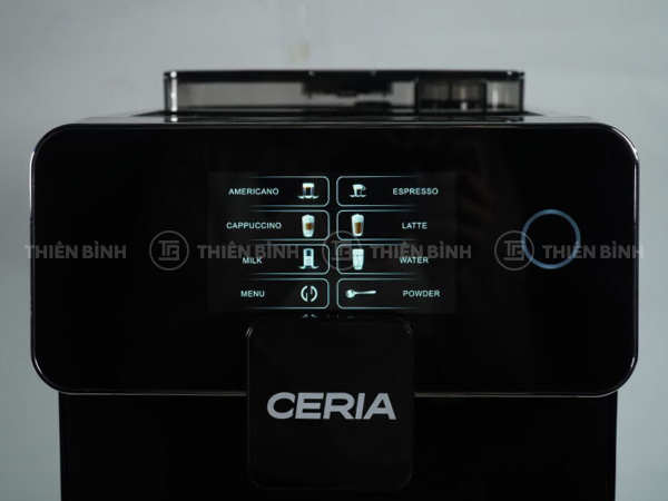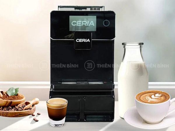 Máy pha cà phê Ceria CA-30B tích hợp xay, ủ, chiết xuất và đánh sữa tự động, điều khiển cảm ứng, bình nước 1.7L, công suất 1300W cho ly cà phê ổn định.