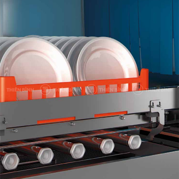 - Thiết bị tích hợp hệ thống rửa công suất mạnh cùng động cơ băng tải vận hành trơn tru, hoạt động hoàn toàn tự động, có thể xử lý từ 100-120 rack mỗi giờ tùy chương trình rửa lựa chọn.