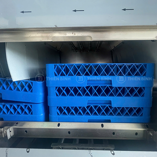 - Máy rửa chén công nghiệp vận hành với nhiệt độ rửa 55-60°C và nhiệt độ tráng 80-85°C cùng áp lực phun mạnh, giúp đánh bật các vết bẩn cứng đầu, khử khuẩn và khử mùi hiệu quả trên bát đĩa.