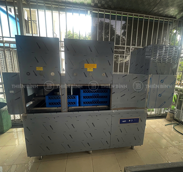 - Máy rửa bát băng chuyền Ozti OBK 2000 được thiết kế gồm hai khoang rửa và một khoang sấy, tạo thành quy trình làm sạch liên hoàn, giúp rửa – tráng – sấy nhanh, liên tục, tối ưu năng suất làm việc và giảm đáng kể nhân công so với rửa thủ công.