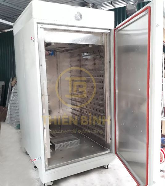 - Khoang sấy dung tích 1500 lít chứa 30 khay inox 56 x 63 x 2 cm, đáp ứng nhu cầu sấy dưới 150kg thực phẩm mỗi mẻ, đảm bảo vệ sinh thực phẩm.