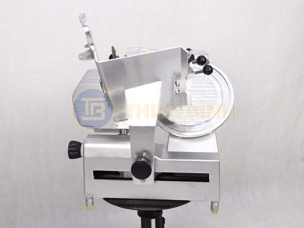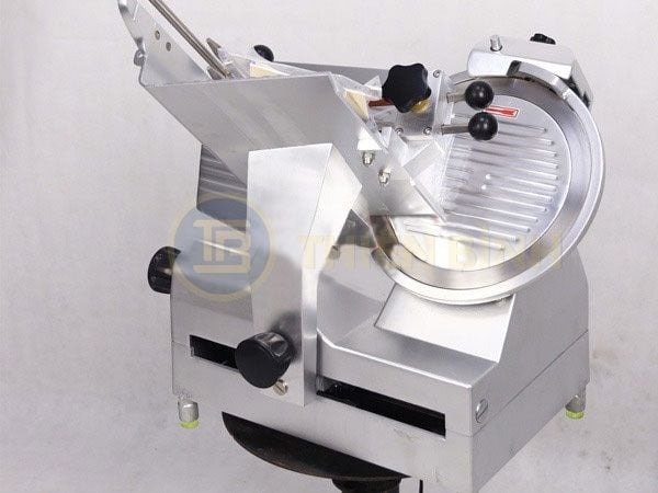 - Lưỡi dao dạng đĩa tròn, bằng thép trắng không gỉ, đường kính 300mm, sắc bén và quay với tốc độ 37 – 40 vòng/phút, cho lát cắt mịn, không nát thịt.