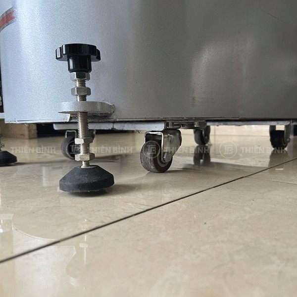 - Phần chân máy đi kèm bánh xe chịu lực, dễ dàng di chuyển đến mọi vị trí trong không gian bếp mà không cần tốn nhiều công sức, kèm theo chốt khóa cố định để giữ máy vững vàng trong lúc vận hành.