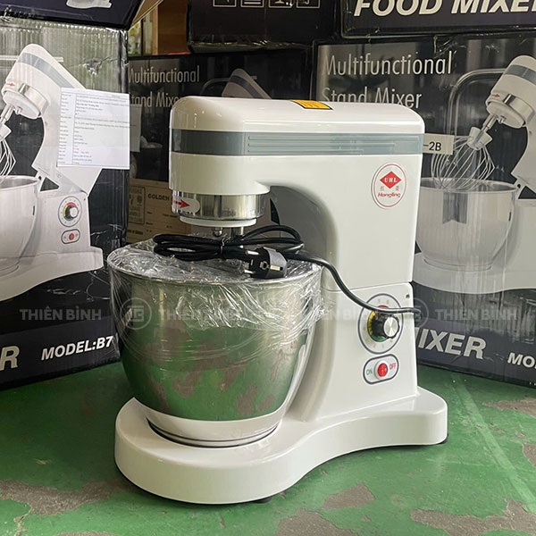 Máy trộn bột 7L Hongling B-7 kích thước nhỏ gọn, mỗi mẻ trộn được 0.5kg bột khô, thích hợp với bếp gia đình hoặc các tiệm bánh nhỏ