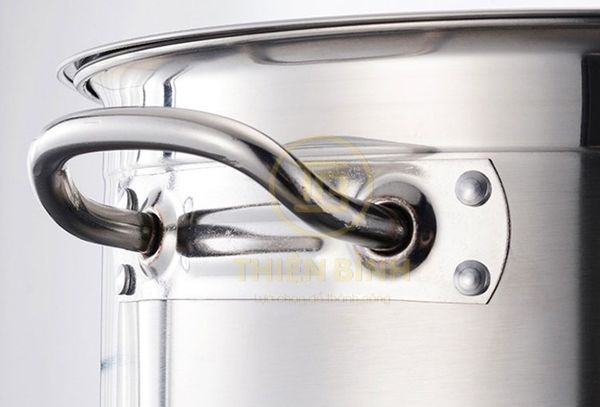 - Nồi được trang bị tay cầm inox dày dặn, bố trí cân đối hai bên thân, giúp việc cầm nắm, di chuyển trở nên an toàn và thuận tiện hơn trong quá trình sử dụng.