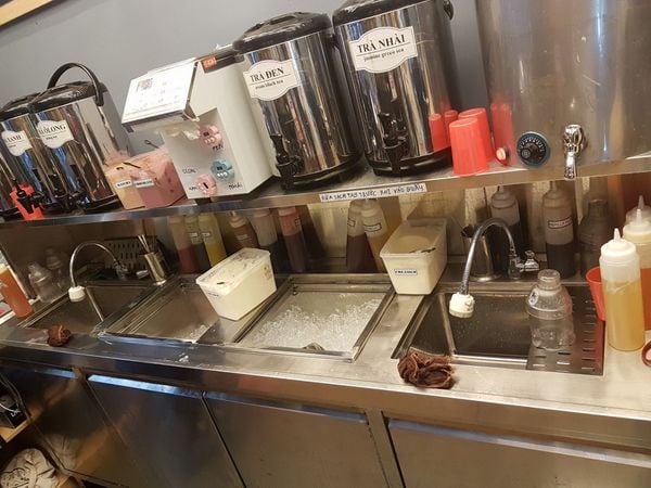 - Bên cạnh khu vực đá là chậu rửa rộng 400 x 500 x 300 mm có hệ thống thoát nước qua xiphong, đảm bảo khu vực làm việc luôn khô ráo, sạch sẽ, rút ngắn thời gian vệ sinh ly cốc và nguyên liệu.