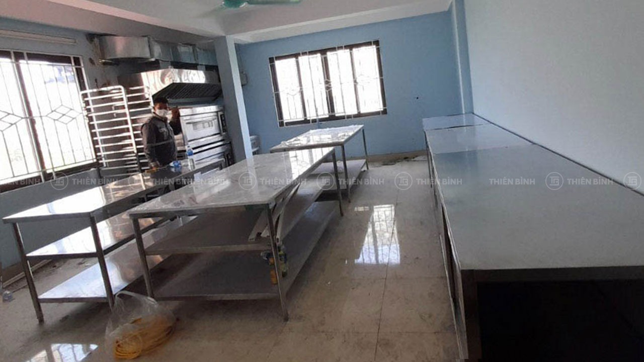 Tiệm bánh LeeA Cake 265 Tô Hiệu – Hà Đông có diện tích khu bếp rộng rãi, không gian thoáng mát, kết hợp với các trang thiết bị máy móc hiện đại, được nhập khẩu từ các thương hiệu nổi tiếng trong ngành do Thiên Bình cung cấp. Và năng lực kinh nghiệm thiết kế, Thiên Bình đã đưa ra quy trình vận hành khu bếp bánh đúng chuẩn nhất cho chủ đầu tư. Điều này đã đáp ứng được những yêu cầu quan trọng trong quá trình làm bánh, sản xuất, cung cấp và gây dựng thương hiệu cho tiệm bánh LeeA Cake.