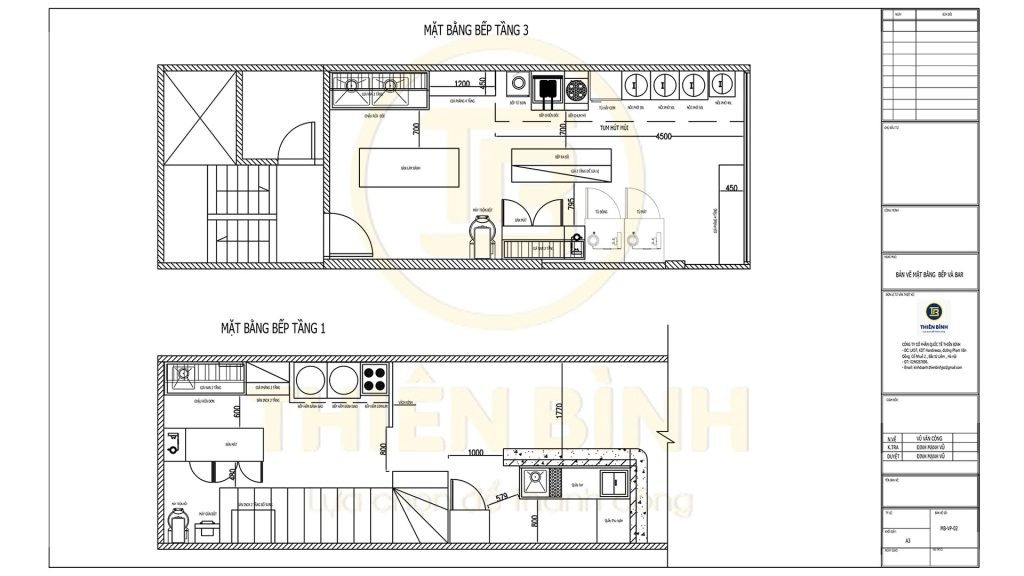 Dựa trên kết quả khảo sát cho thấy, quán Susu bao Bánh bao Thượng Hải chi nhánh Cầu Giấy là 1 tòa nhà gồm nhiều tầng với yêu cầu lắp đặt sự dụng thiết bị ở mỗi tầng khác nhau. Do vậy khu bếp được tiến hành thi công lắp đặt ở 2 tầng. Cụ thể, khu bếp tầng 1 dùng để trộn bột và hấp bánh, khu bếp tầng 3 rộng rãi hơn để thực hiện các công đoạn phức tạp như làm mì, chế biến nhân bánh bao. Dựa vào thực tế mặt bằng Thiên Bình đã lên bản vẽ thiết kế chi tiết, bố trí các thiết bị một cách hợp lý nhất, đảm bảo được tính thuận tiện và hiệu quả trong quá trình vận hành.
