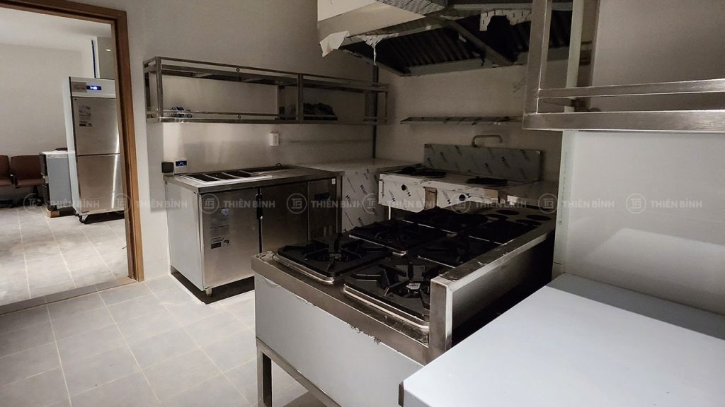 Để đảm bảo an toàn vệ sinh cho thực phẩm và đơn giản hóa quá trình chế biến, Thiên Bình đã thiết kế và sản xuất các thiết bị bếp, giá để đồ, chậu rửa… Đi kèm với đó là các thiết bị bếp chuyên dụng để hỗ trợ tối ưu việc nấu thực phẩm như bếp âu 6 họng, bếp á 2 họng, bếp chiên nhúng đơn, quầy trụng mì… Và chắc chắn không thể thiếu hệ thống hút mùi, thông gió và cấp khí tươi để giúp điều hòa không khí, đảm bảo môi trường làm việc trong khu bếp luôn sạch sẽ trong quá trình hoạt động.