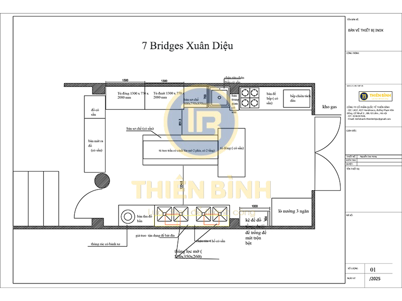 Ngày  2/7/2025, Thiên Bình đã hoàn thành bàn giao, lắp đặt và nghiệm thu công trình thiết kế và cung cấp thiết bị bếp nhà hàng bia thủ công 7 Bridges cơ sở tại Hà Nội. Các thiết bị đã được bàn giao đầy đủ, lắp đặt theo đúng hợp đồng đã ký kết, mang đến một không gian vận hành mới hoàn thiện hơn.