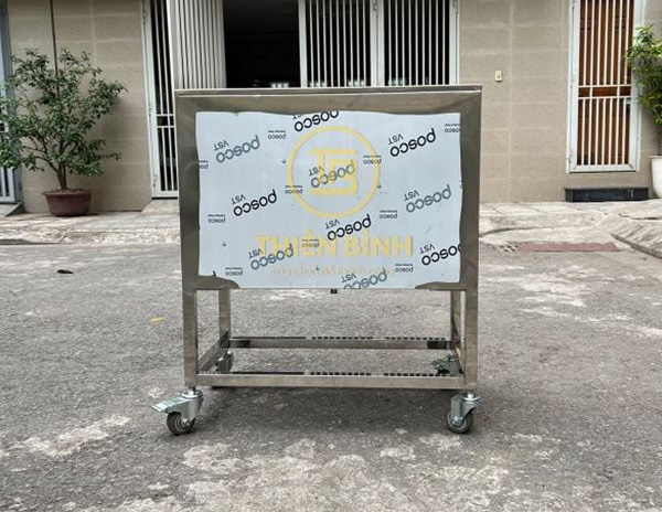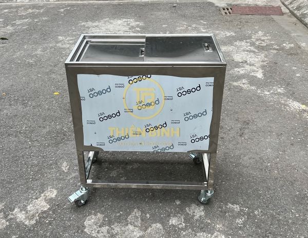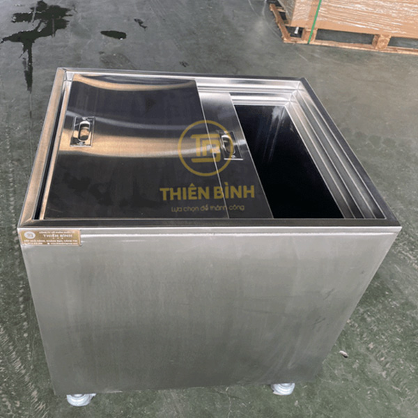 Thùng đá inox di động di động bền bỉ với lớp cách nhiệt hiệu quả, cửa lùa tiện lợi, van xả tích hợp và bánh xe linh hoạt, giữ đá lâu tan, vệ sinh dễ dàng.