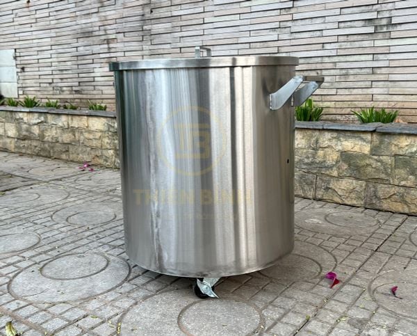 Thùng inox có nắp đậy kết cấu chắc chắn, bề mặt inox sáng dễ vệ sinh, nắp kín hạn chế mùi, phù hợp sử dụng lâu dài trong nhiều môi trường khác nhau.