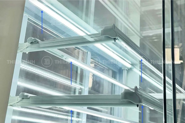 - Khung tủ bằng thép phủ sơn tĩnh điện mang lại độ cứng cáp cao, phù hợp môi trường vận hành liên tục tại tiệm bánh, quán cà phê hay khu ẩm thực.